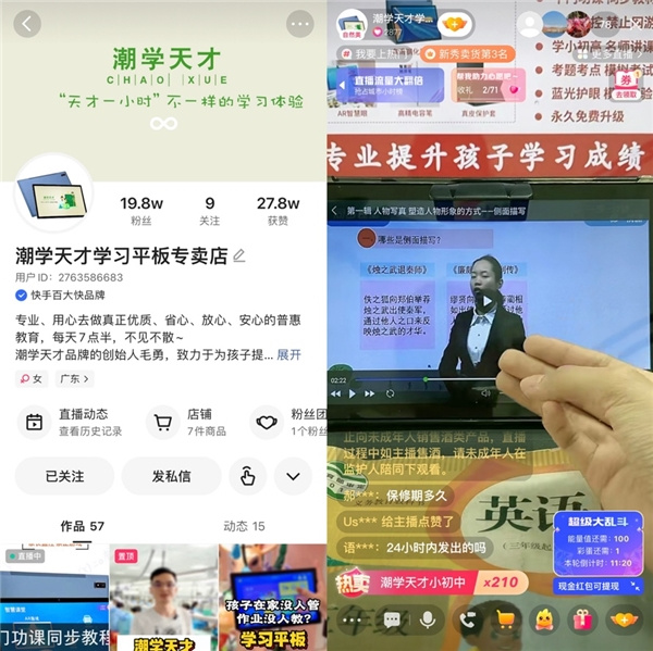 由于消費(fèi)者的關(guān)注點(diǎn)不同,潮學(xué)天才長(zhǎng)久以來在線下積累的產(chǎn)品銷售經(jīng)驗(yàn),在線上出現(xiàn)了“水土不服”。“一開始我們直播的內(nèi)容比較呆板,那時(shí)候就簡(jiǎn)單地考慮我們要賣的是學(xué)習(xí)平板,所以直播中基本都是老師在上課?!睙o趣的內(nèi)容無法吸引用戶,也就沒辦法帶來轉(zhuǎn)化,潮學(xué)天才意識(shí)到,必須要對(duì)傳統(tǒng)的銷售思維進(jìn)行調(diào)整,盡快適應(yīng)快手直播電商的風(fēng)格。