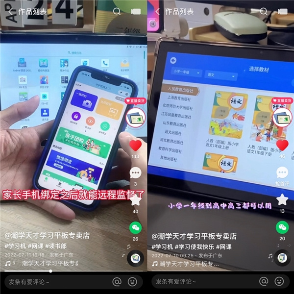 在直播間,潮學(xué)天才一直宣傳讓孩子“自主學(xué)習(xí)”的理念。“現(xiàn)在的教育體系與傳統(tǒng)的不同了,家長(zhǎng)需要理解在課堂之外,學(xué)習(xí)平臺(tái)對(duì)于孩子自主學(xué)習(xí)的重要性。我們的學(xué)習(xí)平板把名師的講課視頻,包括疑難解答和試卷分析,都放到軟件里,能夠讓孩子發(fā)揮主動(dòng)性、創(chuàng)造性,去深入地學(xué)習(xí)、思考、探索、創(chuàng)造。”