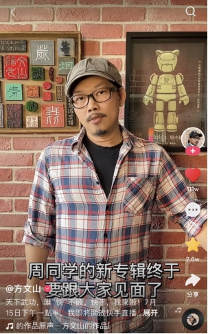 在7月15日下午1點(diǎn)半,入駐快手不到一天的周杰倫御用作詞人方文山,也在快手開(kāi)啟直播首秀,調(diào)侃就是因?yàn)樽约簩?xiě)詞太慢才拖累了專輯進(jìn)度,背起了新專輯姍姍來(lái)遲的“黑鍋”,并主動(dòng)為杰倫開(kāi)脫道:“其實(shí)這六年寫(xiě)了很多首歌,并不是什么都沒(méi)做”。有觀看直播的網(wǎng)友和粉絲表示:“專輯這么晚怪誰(shuí)我不知道,但方文山是真的愛(ài)周杰倫”。直播中方文山還透露了除了收錄在專輯中的歌曲,周杰倫還為他人寫(xiě)了三首歌,但尚未發(fā)表。本意是繼續(xù)為周董“偷懶”開(kāi)脫,但粉絲卻樂(lè)開(kāi)了花,畢竟又有三首新作品可以期待了,雖然不是周董自己唱,四舍五入也算是周杰倫新歌了,有網(wǎng)友調(diào)侃:“今年真的是杰迷過(guò)年,2022年屬于是『周年慶』了”。