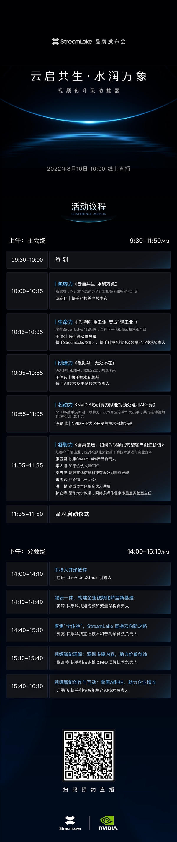 據(jù)悉,在這場(chǎng)主題為“云啟共生·水潤(rùn)萬(wàn)象”的發(fā)布會(huì)上,快手首席技術(shù)官陳定佳,快手高級(jí)副總裁、StreamLake負(fù)責(zé)人于冰,快手技術(shù)副總裁、AI技術(shù)負(fù)責(zé)人王仲遠(yuǎn)等將悉數(shù)到場(chǎng), 首次公開(kāi)StreamLake品牌及產(chǎn)品矩陣,深入解析音視頻和AI技術(shù)發(fā)展趨勢(shì),助力全行業(yè)視頻化和智能化升級(jí)。