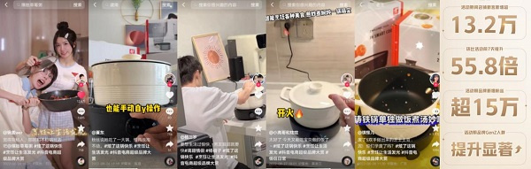 為了讓熱度持續(xù)升溫,抖音電商超級(jí)品牌大賞X雙立人聯(lián)合站內(nèi)頭部搞笑達(dá)人@鍋蓋wer,參與話題為#烹飪讓生活發(fā)光 #炫了這鍋快樂(lè) 花式種草活動(dòng),圍繞雙話題發(fā)布趣味種草視頻,衍生性達(dá)人話題#這小飛棍有點(diǎn)費(fèi)牙齒 成功登上實(shí)時(shí)熱點(diǎn)榜,播放量超478萬(wàn),為品牌及產(chǎn)品聚攏了聲。