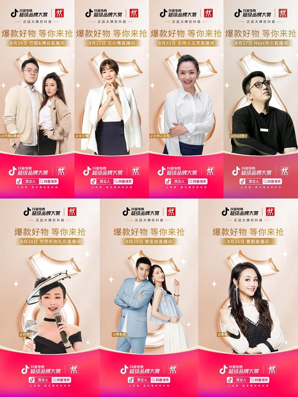 除此之外,雙立人抖音電商超級(jí)品牌大賞在達(dá)人直播資源上也做了重點(diǎn)資源加碼,從8月24日開(kāi)始,巴圖&博谷、劉芳、王小騫、曹穎等多位明星7天接力連播,實(shí)現(xiàn)了GMV的有效增長(zhǎng)。