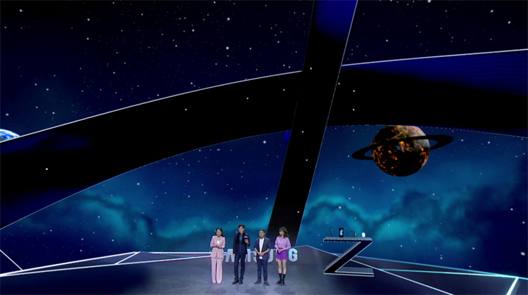 本場(chǎng)直播形式,創(chuàng)新采用了虛擬技術(shù),在線打造了一場(chǎng)虛實(shí)相生的沉浸式感官盛宴,據(jù)悉,這是三星手機(jī)首次運(yùn)用虛擬舞臺(tái)設(shè)計(jì)、MR虛擬混合現(xiàn)實(shí)等技術(shù)定制構(gòu)建絢麗的3D虛擬互動(dòng)場(chǎng)景,并基于UE引擎,實(shí)現(xiàn)了虛擬場(chǎng)景和現(xiàn)實(shí)人物的合成直播。