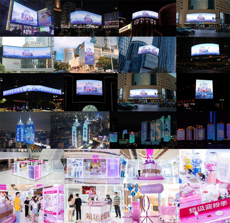 傳播方面,活動期間線上線下全方位滲透品牌口碑。巨量引擎和抖音電商充分發(fā)揮平臺資源優(yōu)勢,多觸點、多層級、多渠道地進行大促傳播造勢和品牌口碑滲透,全面?zhèn)鬟f平臺好物的“質(zhì)價比”信息,帶動品牌生意與口碑的雙豐收。為擴大「超級寵粉季」的活動聲勢,平臺不僅聯(lián)動多地衛(wèi)視預(yù)熱,還發(fā)起9城快閃互動、21城線下地廣、多城梯媒,提前拉滿“嘉年華”氛圍感。