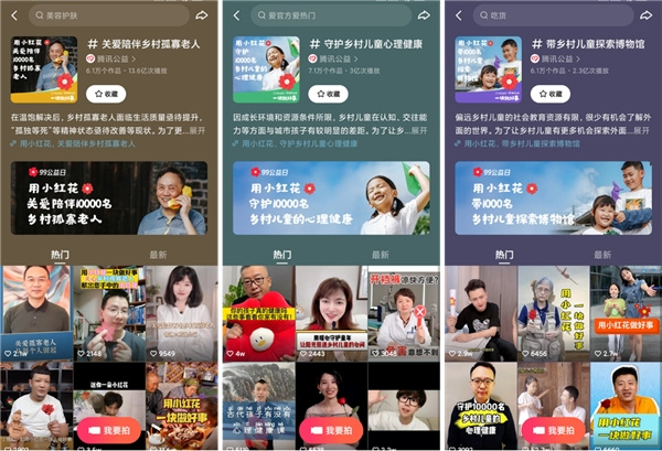 據(jù)悉,公益話題“用小紅花一塊做好事”于9月9日上線,根據(jù)不同公益夢(mèng)想,主話題下設(shè)三大子話題,分別是“帶鄉(xiāng)村兒童探索博物館”、“守護(hù)鄉(xiāng)村兒童心理健康”“關(guān)愛(ài)陪伴鄉(xiāng)村孤寡老人”。截至目前,該公益項(xiàng)目總參與作品量高達(dá)15萬(wàn)+,總播放量超15億。