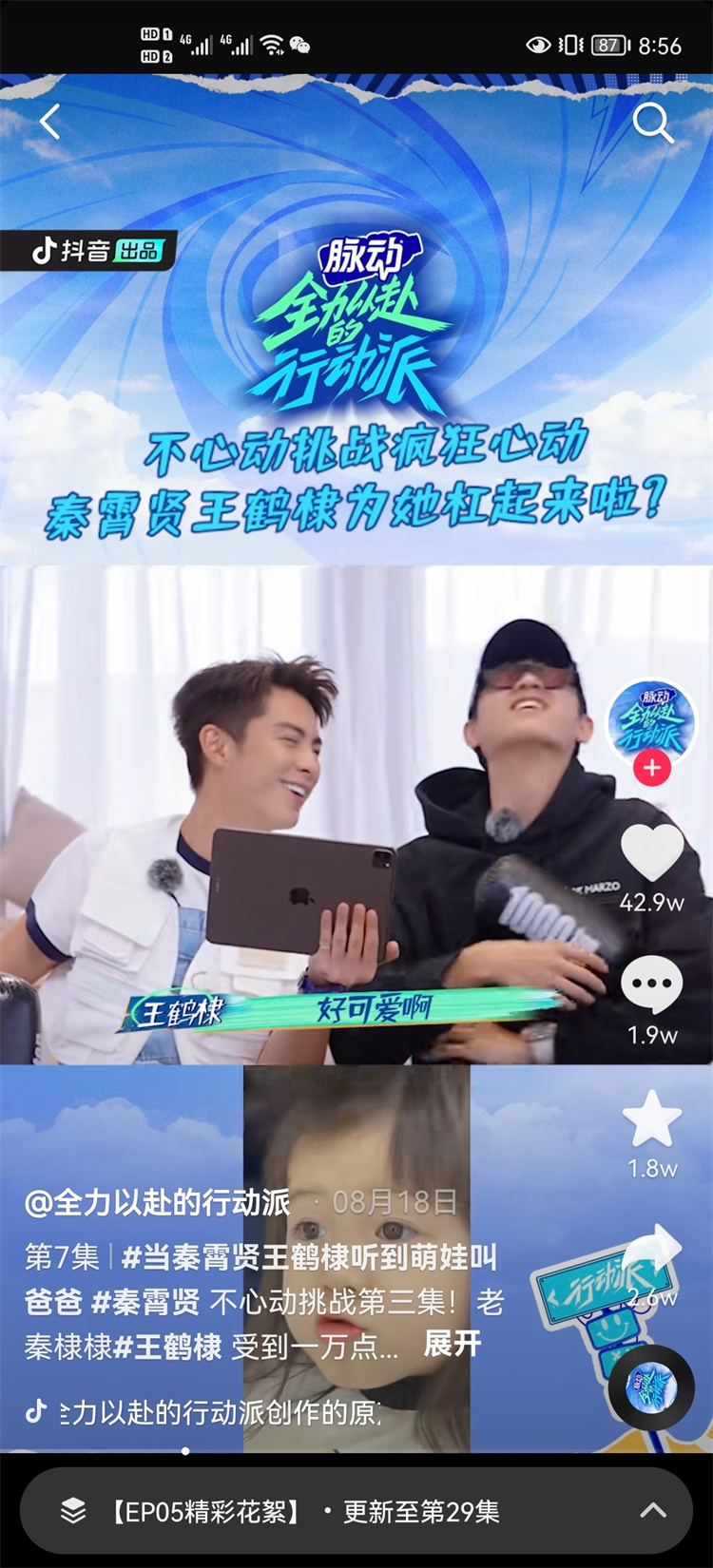 承接節(jié)目流量,脈動(dòng)在其抖音官號(hào)中發(fā)布了不少與《全力以赴的行動(dòng)派》相關(guān)的熱點(diǎn)視頻,與粉絲們一起磕劇,搭建起品牌與節(jié)目觀眾互動(dòng)的長(zhǎng)期渠道。同時(shí),脈動(dòng)官號(hào)與節(jié)目官號(hào)的頻頻互動(dòng),也有助于引流至品牌自有空間,形成了閉環(huán)傳播。