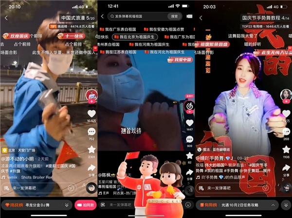 據(jù)了解,快手在中秋、國(guó)慶等節(jié)假日先后上線了多種彈幕特效,并聯(lián)合站內(nèi)政務(wù)號(hào)、媒體號(hào)、明星和多個(gè)垂類大V,攜手站內(nèi)用戶一同通過彈幕抒發(fā)佳節(jié)祝福和祈愿、為祖國(guó)慶生。