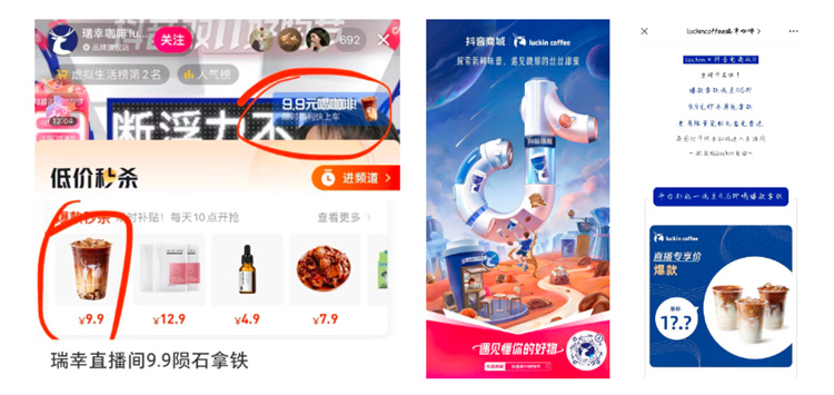 其中抖音商城聯(lián)合瑞幸咖啡推出的“9.9元秒殺拿鐵”活動,通過站內(nèi)四大秒殺福利官主持人舒暢、巴圖博谷等達(dá)人引流,使用戶進(jìn)入秒殺專區(qū)頻道,助力商家活動產(chǎn)品銷售轉(zhuǎn)化,瑞幸咖啡單品秒殺突破4萬單。