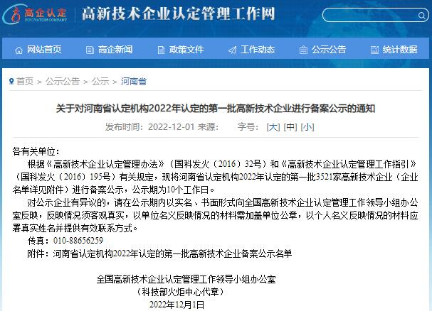 12月1日,全國(guó)高新技術(shù)企業(yè)認(rèn)定管理工作領(lǐng)導(dǎo)小組發(fā)布了《關(guān)于對(duì)河南省認(rèn)定機(jī)構(gòu)2022年認(rèn)定的第一批高新技術(shù)企業(yè)進(jìn)行備案公示的通知》,鄭州銘泰偉業(yè)電子有限公司在公示名單內(nèi)。日前,公示期已結(jié)束。