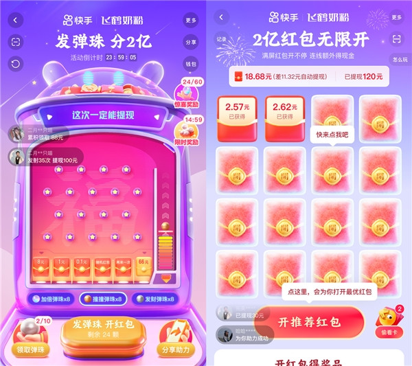 在直播間互動(dòng)的同時(shí),用戶也可參與2億紅包無(wú)限開(kāi),滿屏紅包開(kāi)不停,拆開(kāi)就能領(lǐng),開(kāi)完的紅包可連成線還有額外連線獎(jiǎng)勵(lì),開(kāi)紅包越多、連線越多,則獎(jiǎng)勵(lì)越多,紅包累積30元即可提現(xiàn),快人一步搶先開(kāi)完還可得“早鳥(niǎo)”紅包,紅包加碼,好運(yùn)翻倍。