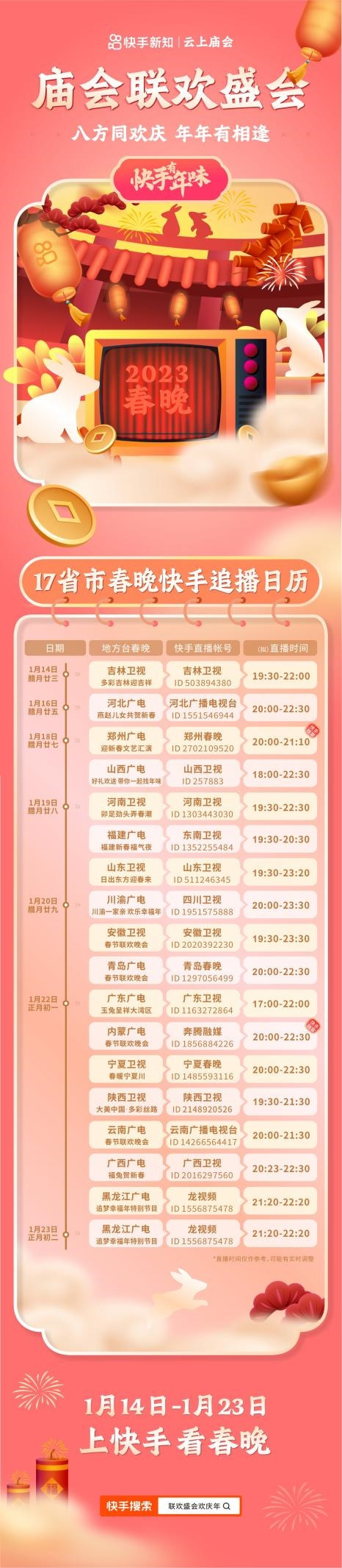 上快手搜索「春晚」,除夕晚上8點熱熱鬧鬧看春晚,一家人感受紅紅火火的年味兒,我們不見不散!