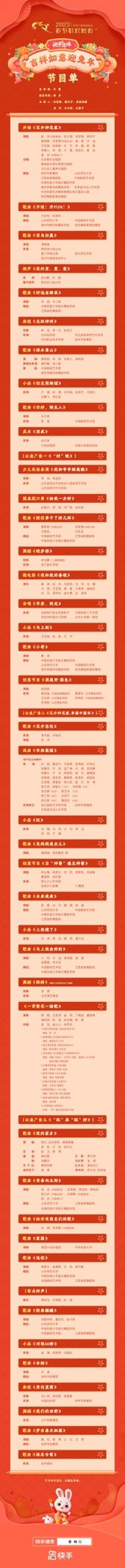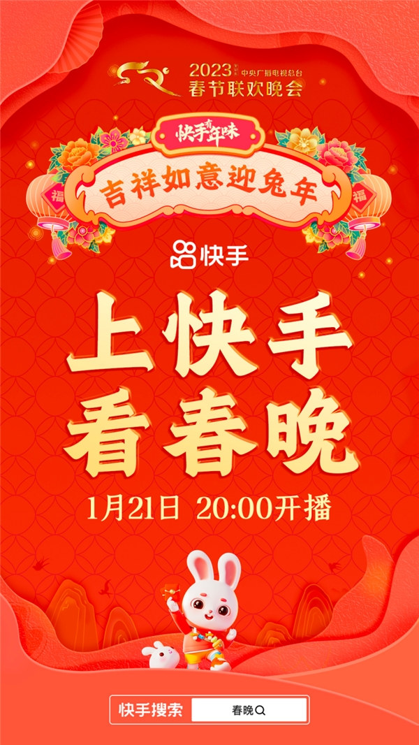 兔年春節(jié)來臨之際,中央廣播電視總臺《2023年春節(jié)聯(lián)歡晚會》節(jié)目單正式發(fā)布。用戶上快手搜索「春晚」,即可預(yù)約總臺春晚直播,在除夕晚上8點共賞這場融合生活味兒、中國味兒、科技味兒的新春盛宴。