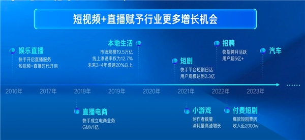 放眼互聯(lián)網(wǎng)行業(yè),短視頻與直播賽道增長動力依然強勁??焓?022年第三季度財報數(shù)據(jù)顯示,快手平均日活躍用戶突破3.63億,同比增長13.4%,用戶規(guī)模再創(chuàng)歷史新高。依托于快手生態(tài),除了娛樂直播和直播電商,從2021年開始,本地生活、短劇、小游戲、招聘、房產(chǎn)等更多與用戶生活、傳統(tǒng)行業(yè)息息相關(guān)的垂直內(nèi)容在快手扎根生長: