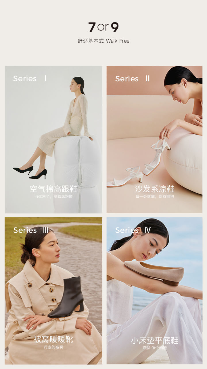 在多維度舒適的基調(diào)之上,實現(xiàn)全品類女鞋的品牌布局,7or9正在開啟全新的飛躍之旅,在打造舒適女鞋的賽道之上,始終扮演著引領者的角色,也始終以自己的節(jié)奏走出松弛的步調(diào)。