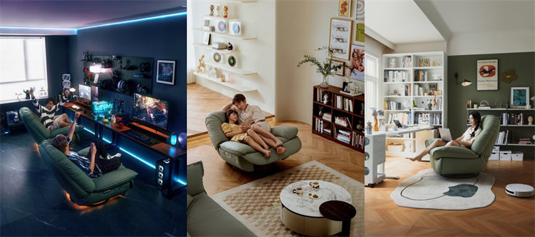 這款產(chǎn)品采用納帕硅膠皮面料,環(huán)保材質(zhì)賦予舒適膚感,且輕松好打理,同時(shí)能兼顧工作模式、游戲模式、追劇模式,甚至躺平模式,充分滿足現(xiàn)代年輕人在沙發(fā)上追劇、玩游戲、休息等需求,并搭載喚醒語(yǔ)音、隱藏儲(chǔ)物箱、USB充電接口等驚喜亮點(diǎn),細(xì)節(jié)滿滿。外觀上,它以中國(guó)傳統(tǒng)色“橋下春波”為主打色,能夠適配不同裝修風(fēng)格的空間。