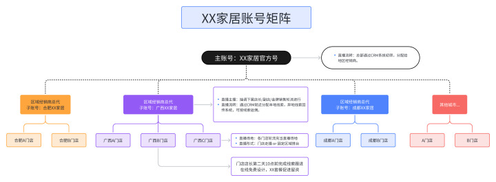 基于對(duì)抖音平臺(tái)資源和工具的使用,該家居品牌建立起了功能清晰的賬號(hào)矩陣。