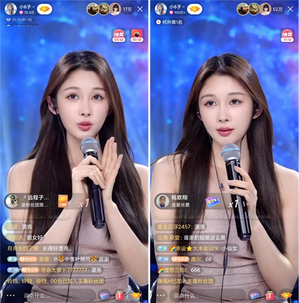 有粉絲表示,小6子身上散發(fā)著清冷典雅、天生易碎的氣質(zhì),非常有記憶度和辨識(shí)度。身材高挑、嗓音甜美等先天條件,加之愿意傾聽粉絲心聲、能夠提供正能量情緒,使她很快躋身優(yōu)質(zhì)主播之列,“鐵粉非常多,有時(shí)我連播十幾個(gè)小時(shí),他們就在直播間陪伴十幾個(gè)小時(shí),挺感動(dòng)的!”