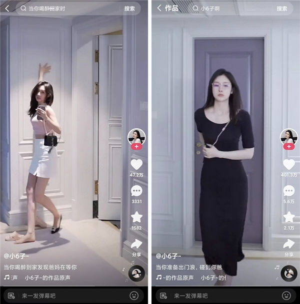 長期的堅(jiān)持與努力,換來了登上流量快車的機(jī)會(huì)。2020年8月,她從朋友的經(jīng)歷中找到靈感,創(chuàng)作出“當(dāng)你喝醉到家發(fā)現(xiàn)爸媽在等你”“當(dāng)你準(zhǔn)備出門玩碰到你爸”等情景視頻,變裝技巧和反轉(zhuǎn)形象令人稱奇,3個(gè)作品就在快手獲得近1.2億播放量。透過這個(gè)系列,人們也注意到她冷艷外表下的那份活潑幽默。