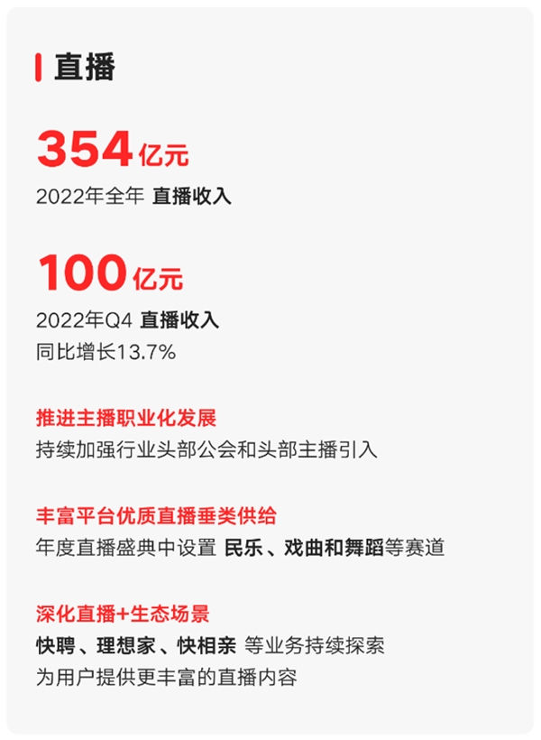 流量大盤優(yōu)勢之外,快手直播用心服務(wù)主播的力度,成為吸引主播入駐的重要原因。資源扶持層面,2022年快手就明確表示,全年拿出5億現(xiàn)金和30億流量,激勵(lì)優(yōu)質(zhì)內(nèi)容創(chuàng)作及賦能主播成長;舞臺(tái)展示層面,快手聚焦主播生態(tài),持續(xù)加大運(yùn)營力度,打造了百大主播評(píng)選、年度盛典等活動(dòng)IP,以及《聲聲如夏花》《下播之后》等內(nèi)容IP,助力優(yōu)質(zhì)主播得到曝光、成長和躍遷。