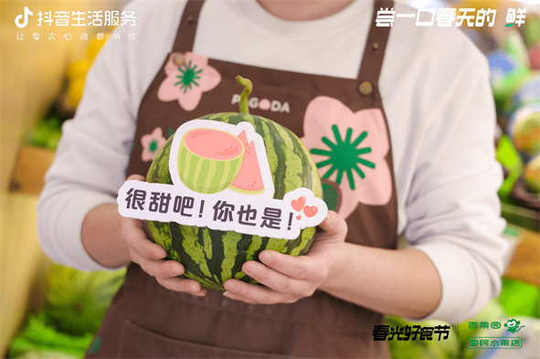 在春日鳳梨營銷旺季,百果園在上海推出了10家「春光好食節(jié)」嘗一口春天主題門店,配合抖音上新團(tuán)品鳳梨,線下打造10家快閃店讓用戶進(jìn)店隨處可見的水果文案與心理雞湯集合制作手舉牌,用吃水果的方式表達(dá)自己,吃的不僅僅是水果,也是一種生活態(tài)度。線下主題門店推出春季踏青限定打卡物料,線下設(shè)置抖音一店一碼物料鋪設(shè)引導(dǎo)ugc打卡,還有戴著可愛水果頭套的店員為用戶推薦春日好果。讓用戶行走在春日街頭,走進(jìn)百果園仿佛走進(jìn)春天的水果世界。