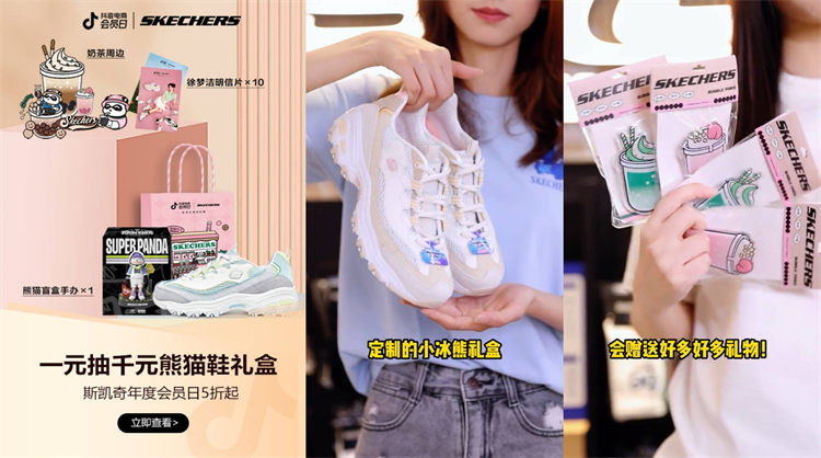 這一屆年輕人既追求“體驗(yàn)式消費(fèi)”,又要“理性選擇”,唯有直擊心智的興趣,能讓他們主動(dòng)“入會(huì)”,成為品牌的忠粉。在斯凱奇抖音電商會(huì)員日期間,斯凱奇在線(xiàn)推出抖音電商會(huì)員專(zhuān)享的徐夢(mèng)潔同款小冰熊禮盒。禮盒內(nèi)容物充滿(mǎn)奇趣,從斯凱奇小冰熊,到周邊的奶茶IP手機(jī)支架、貼紙、熊貓手辦、抱枕、明信片,軟萌可愛(ài)的設(shè)計(jì)非常吸睛。用戶(hù)在抖音商城,搜索“斯凱奇官方旗艦店”,即可“入會(huì)”選購(gòu)專(zhuān)享禮盒,追隨自己的興趣。