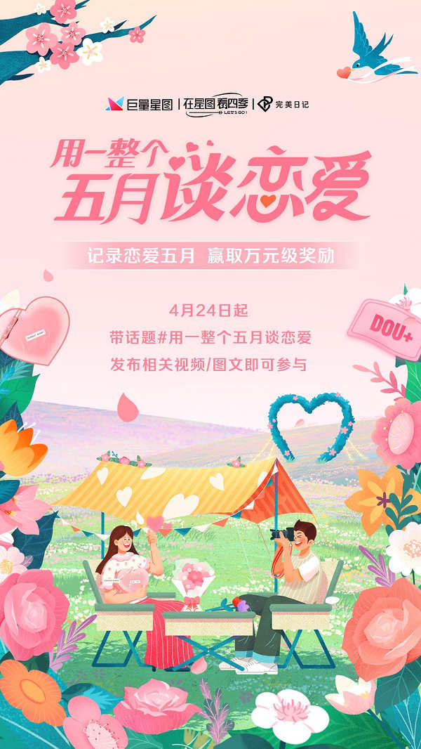 通過對消費者心理的長期洞察,巨量星圖熱點生活方式營銷IP「在星圖看四季」鼓勵創(chuàng)作者們踴躍投稿,打造熱點內(nèi)容,為品牌提供節(jié)點營銷新打法。即日起,上抖音搜索話題#用一整個五月談戀愛 參與巨量星圖多樣玩法,和眾多內(nèi)容創(chuàng)作者一起,奔赴夏日的心動!