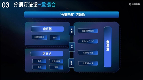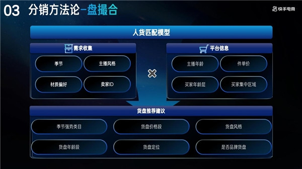 在此基礎上,快手電商官方運營還可以借助科學的人貨匹配模型收集達人需求,并結合平臺信息,為商家提供貨盤推薦建議,幫助其與達人成功對接。同時,在“分銷三盤”方法論的指引下,官方運營也將和主播與貨主一起盤直播、盤流量、盤貨品,以達成分銷目標。