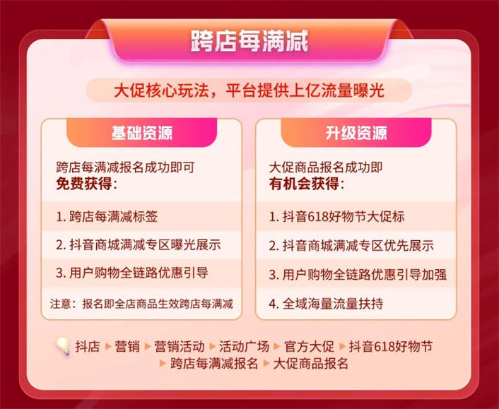 從營銷、爆品、人群、貨架與內容不同領域,抖音電商618好物節(jié)為商家、達人提供了全面的增長契機。加入抖音618好物節(jié),即可打造大促氛圍,鎖定興趣消費,更有上億流量曝光、巨量千川百億流量扶持,助力618大促快速掘金!