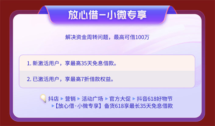 在財經(jīng)玩法方面,「抖音支付&抖音月付」將分別通過分期免息、支付立減等方式,加快用戶交易決策;「放心借-小微專享」與「提前收款」將解決商家資金周轉問題、縮短收賬周期,為商家提供更良性的生意環(huán)境;還有「運費險」補貼保障,促進用戶下單轉化,減少商品退換貨產(chǎn)生的運費糾紛。