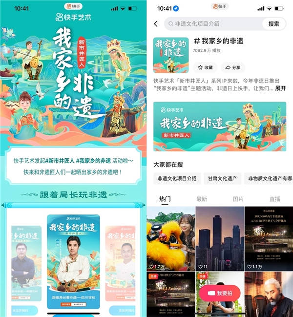 而在今年“文化和自然遺產(chǎn)日”中,快手也開(kāi)展了一系列非遺宣傳展示活動(dòng),聯(lián)動(dòng)線(xiàn)上直播與線(xiàn)下展演,為非遺技藝搭建舞臺(tái),以創(chuàng)新形式打造國(guó)潮文化,吸引更多人關(guān)注非遺傳承。據(jù)悉,在6月1日至30日「新市井匠人之我家鄉(xiāng)的非遺」活動(dòng)期間,文旅局長(zhǎng)、明星藝人、快手站內(nèi)創(chuàng)作者為家鄉(xiāng)非遺打Call,通過(guò)非遺技藝與當(dāng)?shù)匚幕慕Y(jié)合,立體展示全國(guó)各地的非遺保護(hù)傳承樣貌,帶動(dòng)各城市文旅產(chǎn)業(yè)發(fā)展。