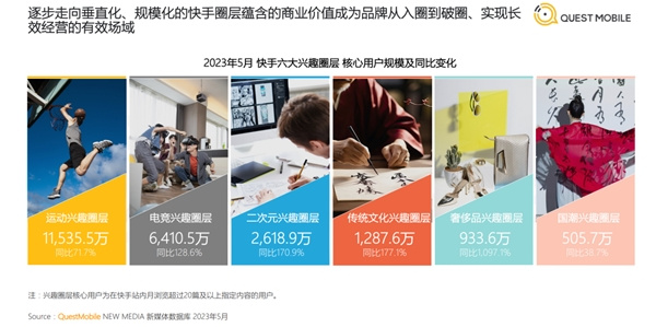同時(shí),快手用戶以興趣為導(dǎo)向,自發(fā)形成運(yùn)動(dòng)、電競、二次元、傳統(tǒng)文化、奢侈品、國潮等垂直化和規(guī)模化的興趣圈層,是品牌從入圈到破圈、實(shí)現(xiàn)長效經(jīng)營的有效場域,使品牌在面對多變的年輕群體時(shí),有了實(shí)現(xiàn)群體擴(kuò)容的確定性機(jī)會點(diǎn)。