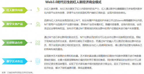 Web3.0時(shí)期的紅人與Web2.0相比擁有更多的創(chuàng)作自主權(quán),在區(qū)塊鏈和智能技術(shù)的支撐下,內(nèi)容產(chǎn)出擁有了全新的展現(xiàn)形式,在將線下場(chǎng)景遷移至線上的同時(shí)也為紅人新經(jīng)濟(jì)衍生出了新型商業(yè)模式。同時(shí),作為支撐Web3.0經(jīng)濟(jì)體系運(yùn)行的核心要素?cái)?shù)字藏品,更多應(yīng)用于國(guó)內(nèi)的一級(jí)市場(chǎng)交易,主要表現(xiàn)為數(shù)字藏品的發(fā)行。
