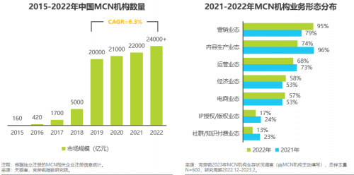 相關(guān)數(shù)據(jù)顯示,2022年網(wǎng)絡(luò)廣告市場(chǎng)規(guī)模突破萬(wàn)億,在品牌主數(shù)字營(yíng)銷意愿保持高熱度的背景下,中國(guó)MCN機(jī)構(gòu)數(shù)量超2.4萬(wàn)家,業(yè)務(wù)方向整體向營(yíng)銷業(yè)態(tài)回歸。