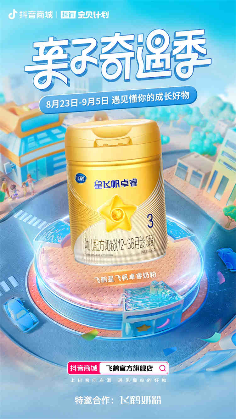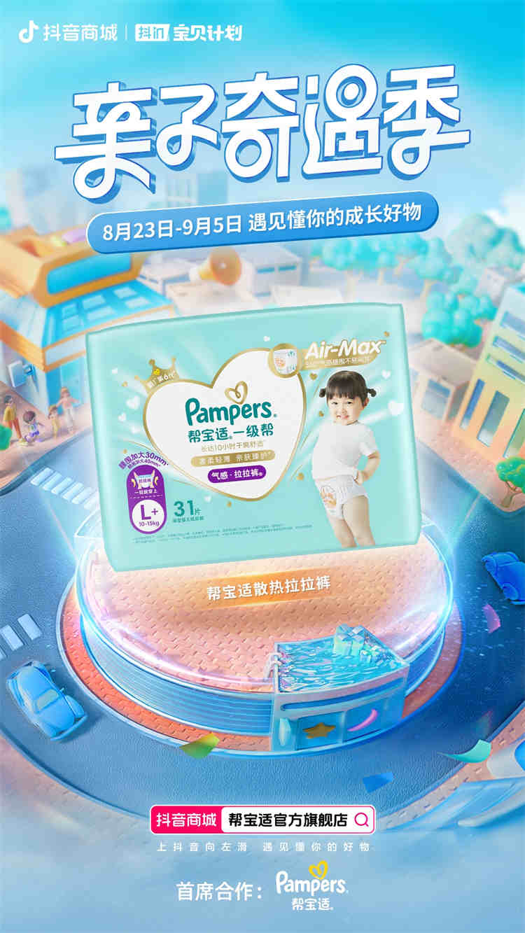 8月23日—9月5日期間,抖in寶貝計劃將圍繞“親子奇遇季”主題,涵蓋奶粉、紙尿褲、兒童洗護(hù)、兒童輔食、兒童玩具、兒童服飾等多個細(xì)分領(lǐng)域,以一系列舉措不斷挖掘母嬰渠道中的消費潛力。本次活動將攜手首席合作品牌幫寶適,特邀合作品牌飛鶴、松達(dá),優(yōu)享合作品牌佳貝艾特、星鯊、信誼、紐曼斯,以及十月結(jié)晶、舒比兔、美贊臣等十余家母嬰品牌,傳授育兒經(jīng)驗,分享優(yōu)質(zhì)好物,為更多Z世代父母打造一場充滿驚喜、值得期待的奇遇之旅,給年輕的寶爸寶媽提供高品質(zhì)產(chǎn)品和高價值參考范式,用強(qiáng)內(nèi)容聯(lián)動抖音商城、強(qiáng)轉(zhuǎn)化推進(jìn)達(dá)人合作、強(qiáng)玩法綁定用戶,為合作品牌生意增長提供更強(qiáng)有力的產(chǎn)品曝光及銷售轉(zhuǎn)化。