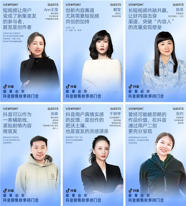 9月19日,抖音舉辦“矚幕由你”劇集秋季閉門會。會上,來自抖音、騰訊視頻、愛奇藝、檸萌影視、新麗傳媒、留白影視、華策影視等的視頻平臺和劇方大咖齊聚一堂,聚焦劇集行業(yè)現(xiàn)狀,共同探討劇集發(fā)展新趨勢、營銷宣發(fā)新玩法,助力更多優(yōu)質(zhì)劇集實(shí)現(xiàn)爆發(fā)。