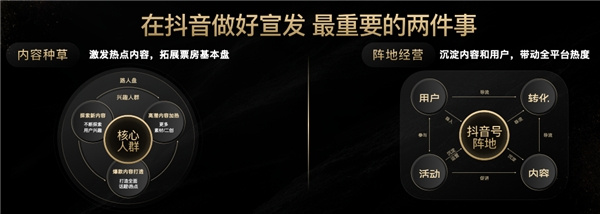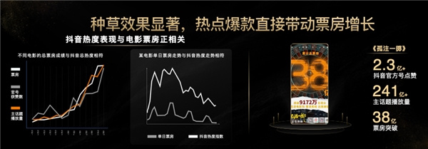 抖音認(rèn)為,做好宣發(fā)有兩件事最重要:第一是內(nèi)容種草,也就是不斷激發(fā)爆款內(nèi)容,拓展票房基本盤(pán);第二是做好陣地經(jīng)營(yíng),不斷沉淀內(nèi)容和用戶,帶動(dòng)全平臺(tái)熱度。