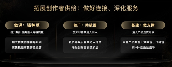 為助力好內(nèi)容生產(chǎn),一方面,抖音將提供創(chuàng)意與運(yùn)營(yíng)支持,在宣發(fā)創(chuàng)意方面進(jìn)行共創(chuàng),在運(yùn)營(yíng)方面提供指導(dǎo)和策略建議等;另一方面,通過(guò)拓展創(chuàng)作者供給,為電影宣發(fā)提供創(chuàng)作助力。