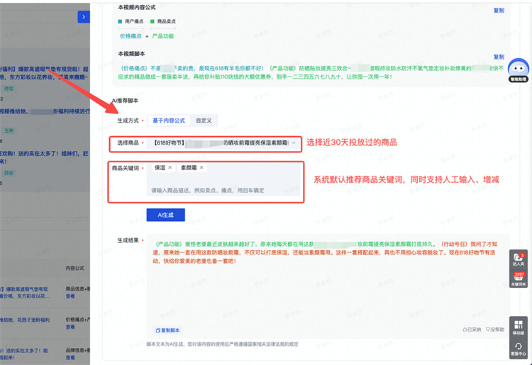 完成素材拆解洞察以后,巨量云圖的「內(nèi)容實(shí)驗(yàn)室 - AI腳本生成」工具還能幫助用戶快速生成素材腳本,品牌只需選擇一個高互動視頻,系統(tǒng)就能根據(jù)這個視頻的內(nèi)容公式生成素材口播腳本,降低制作內(nèi)容的門檻的同時,提高內(nèi)容的質(zhì)量和傳播效果。