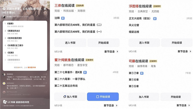 在UC瀏覽器,可以又快又準地搜到,海量豐富的小說資源都能免費看正版。玄幻、都市、言情、歷史、科幻等各種題材的小說,都可以在UC瀏覽器搜得到,不管你是愛看爽文解壓的打工人,還是追甜文磕CP的主婦,都可以在UC找到對味的小說。此外,在UC還可以看各類熱播劇的正版原著小說,如爆款劇《長相思》《以愛為營》《蓮花樓》《南風(fēng)知我意》《三體》《親愛的熱愛的》《司藤》等,都能滿足追劇黨一邊追劇一邊刷原著的需求。