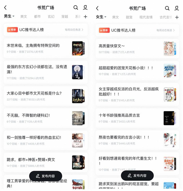 除了豐富的書源和優(yōu)質(zhì)的閱讀體驗,UC為苦于找不到合胃口下飯小說的書友們,提供了UC書荒廣場這一書粉交流圈,數(shù)萬名的老書蟲在這里分享、交流好看、有趣的書單,跟著書蟲們追書看書不踩雷,總能找到寶藏優(yōu)質(zhì)又對味的小說書單。UC的書單功能支持用戶自定義個人優(yōu)質(zhì)書單,分享到廣場交流,同時實現(xiàn)找書、推書兩大功能。