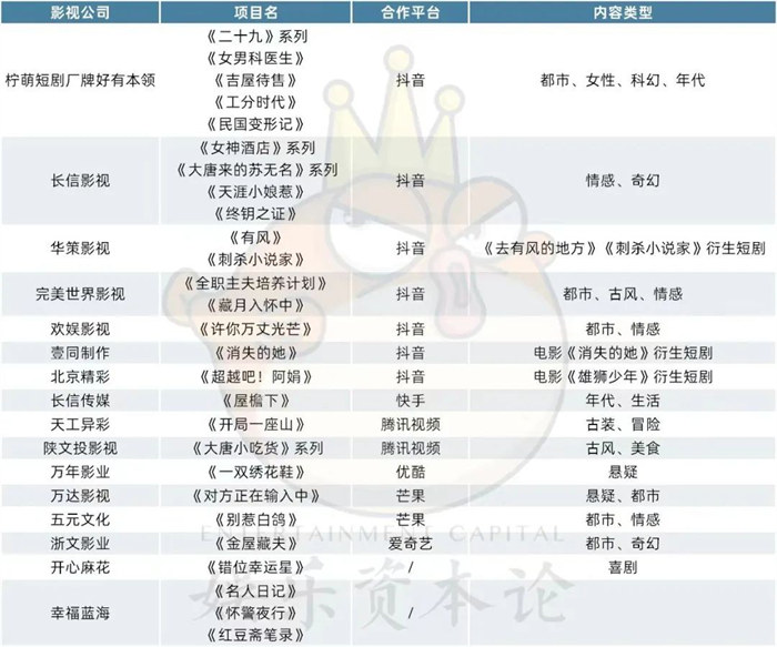 影視公司微短劇項目不完全統(tǒng)計(根據(jù)各平臺片單及公開信息整理)