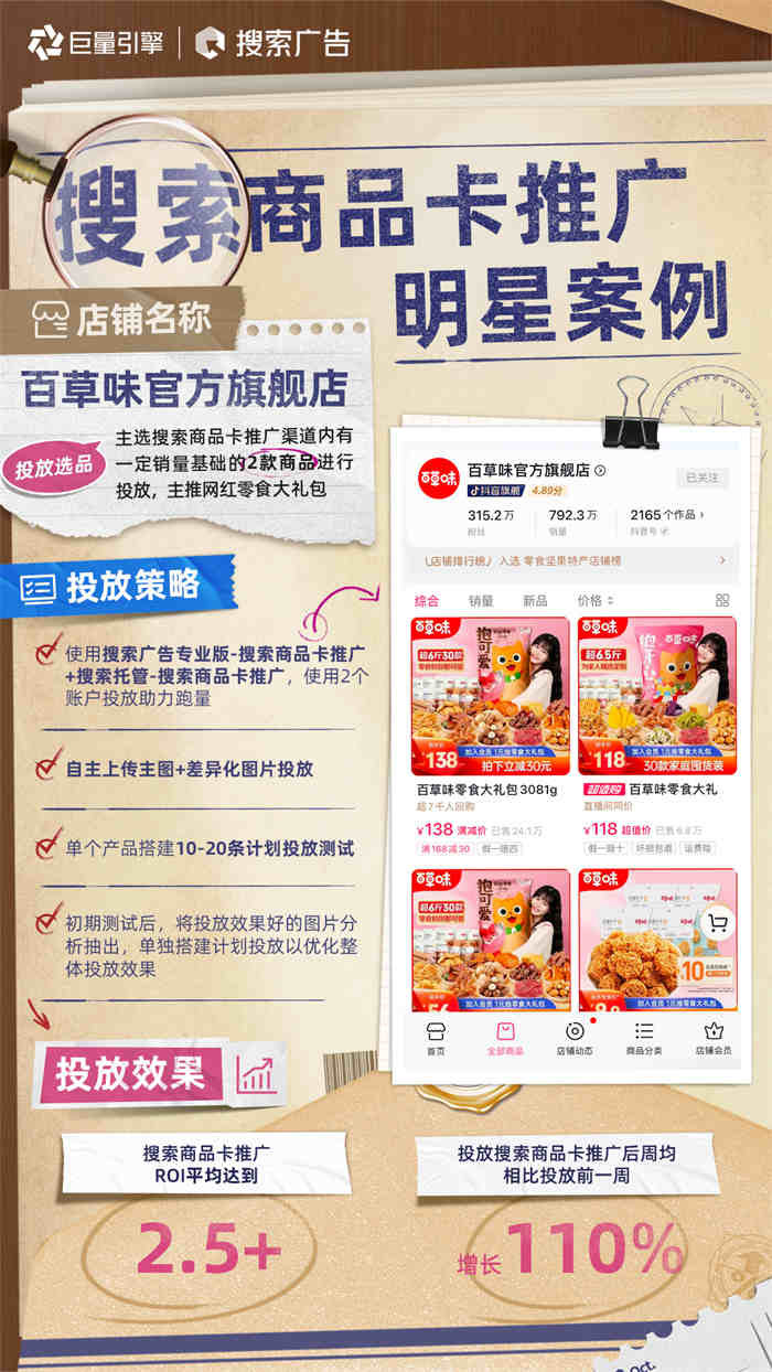 案例一:搜索商品卡推廣助力百草味拓展商城流量