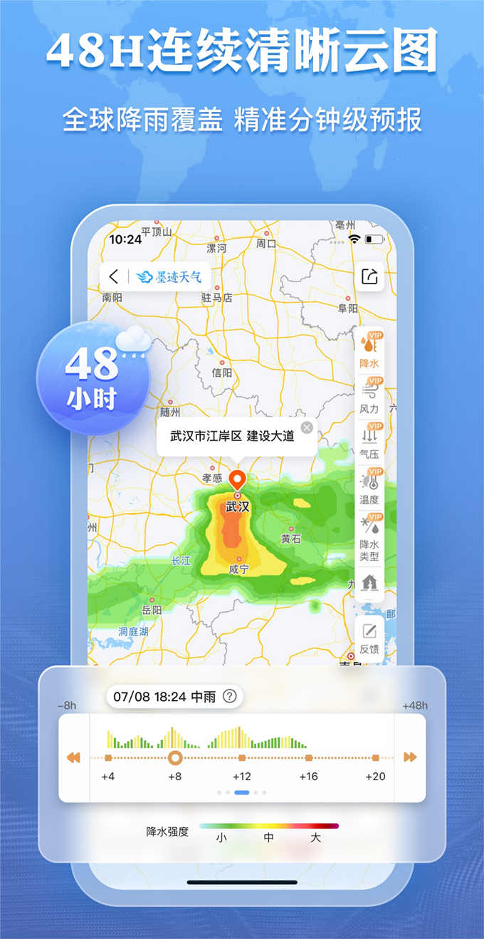 面對市場多樣的氣象服務(wù)需求,今年7月,墨跡天氣基于深度學(xué)習(xí)的時空外推、超分辨率及數(shù)據(jù)融合技術(shù),上線了全新的氣象產(chǎn)品——“觀雨大師”,解決了此前業(yè)內(nèi)降水云圖分辨率有限、48小時降水云圖空間精度不足且不連貫的顯示問題,以超出以往15 倍的雷達(dá)圖像推演,將雨云未來48小時運(yùn)動、發(fā)展趨勢平滑展示出來。