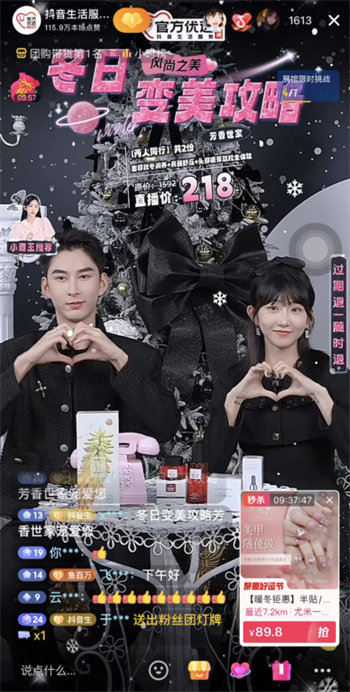 12月3日 抖音生活服務(wù)綜合業(yè)務(wù)中心聯(lián)動(dòng)抖音生活服務(wù)官方優(yōu)選,邀請(qǐng)多家麗人行業(yè)頭部商戶:@芳香世家、@尤米美甲、@克麗緹娜、@發(fā)源地、@芭芭多等 共同參與“冬日變美”主題直播,抖音千萬(wàn)粉絲量級(jí)達(dá)人@小霸王 也首次參與生活服務(wù)行業(yè)直播,直播間整體曝光人次高達(dá)110w+,支付交易額數(shù)百萬(wàn)。此次主題直播賦能效果良好,亮點(diǎn)頻現(xiàn):