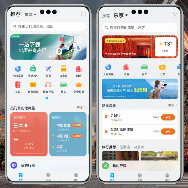 當然如果是短期旅行的話,還得解決網(wǎng)絡問題,這方面建議可以通過華為天際通購買套餐流量,不用費勁購買當?shù)乜?,劃算又穩(wěn)定,即使已經(jīng)到了國外沒有網(wǎng)絡也可以通過天際通的無網(wǎng)環(huán)境體驗網(wǎng)絡情況后再購買,非常貼心。