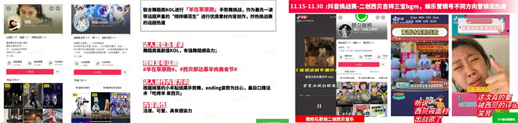 10月14日,西貝那達(dá)慕羊肉美食節(jié)率先在北京拉開帷幕,推出“羊有九香,越吃越香”系列羊肉新品,同步線上發(fā)起#西貝烤羊有點(diǎn)東西 話題挑戰(zhàn)賽,打造“羊在草原跑,肉在西貝烤”的消費(fèi)心智,以海量優(yōu)質(zhì)內(nèi)容拉升用戶對活動(dòng)的認(rèn)知以及活動(dòng)參與度。11月17日,西貝線上全渠道私域密集宣發(fā),粘性用戶群、公眾號、微博、小紅書集中預(yù)告“11.22上抖音 來西貝吃烤羊”,打響品牌提升影響力的關(guān)鍵一戰(zhàn),吸引達(dá)人投稿、短視頻曝光超8000萬次。