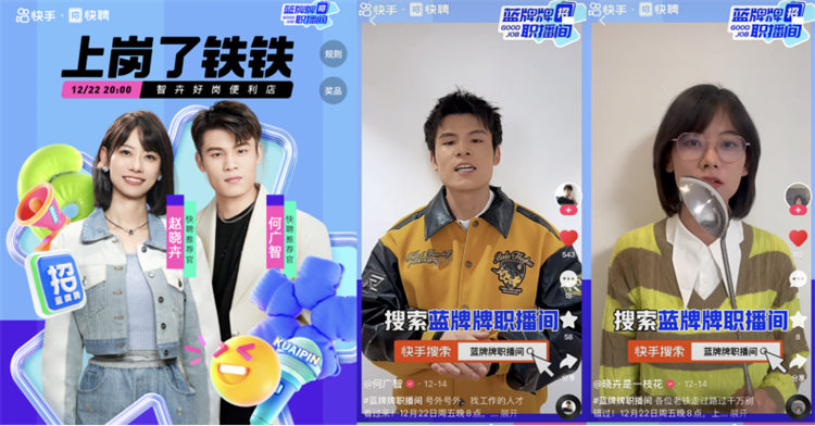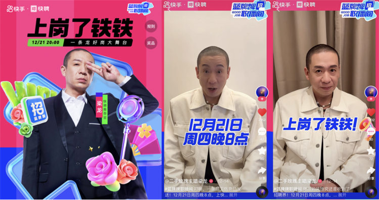 “明星來招聘,老鐵請上崗”,快手快聘專場“職”播開播在即,12月21-22日晚8點,上快手搜索“藍(lán)牌牌直播間”,與梁龍、“智卉”組合一起相約解鎖好崗位吧!