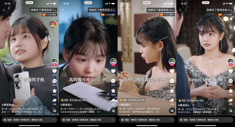 值得一提的是,《我綁定了愛情系統(tǒng)》作為品牌方OPPO的商業(yè)定制劇,一方面,在劇情設(shè)定上,具有魔法的OPPO“愛情系統(tǒng)”不僅成為此劇的一大亮點(diǎn),同時又能在關(guān)鍵時刻推動劇情發(fā)展,巧妙的設(shè)定使得品牌植入毫無違和感。此外,OPPO Reno11新機(jī)精致的外觀、強(qiáng)大的拍照功能等都隨著劇情的推進(jìn)不斷被強(qiáng)化。不僅如此,女主的人物定位以及對美好愛情的向往,也都十分契合OPPO Reno11的目標(biāo)用戶群體,讓短劇營銷不僅能為品牌造勢,還能真正帶動其銷量的增長。