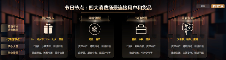 一個產(chǎn)品的引爆,除了選對發(fā)布策略之外,還可以結(jié)合情感營銷,讓人群、場景、需求和貨品實現(xiàn)精準(zhǔn)匹配。在制定策略時,品牌可以考慮不同人群的需求,使情感節(jié)點更具廣泛適應(yīng)性。