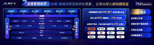 2. 發(fā)展?fàn)I銷科學(xué): 為了讓廣告主的每分投入都能“如期獲益”,騰訊廣告在大會(huì)上正式發(fā)布了全新的科學(xué)營(yíng)銷體系——騰訊廣告如翼 。通過(guò)整合騰訊全場(chǎng)景、全內(nèi)容、全場(chǎng)域,騰訊廣告如翼可基于騰訊全鏈路營(yíng)銷生態(tài),幫助品牌商家看清全盤資產(chǎn)沉淀與流轉(zhuǎn)情況,并提供更加科學(xué)的營(yíng)銷決策與科學(xué)化度量分析,以滿足多元營(yíng)銷訴求,推動(dòng)各行業(yè)投放提效。